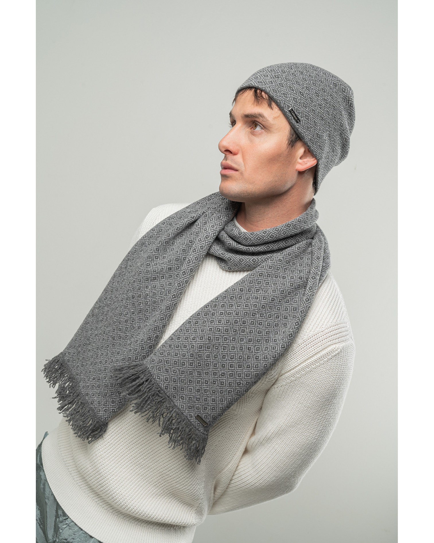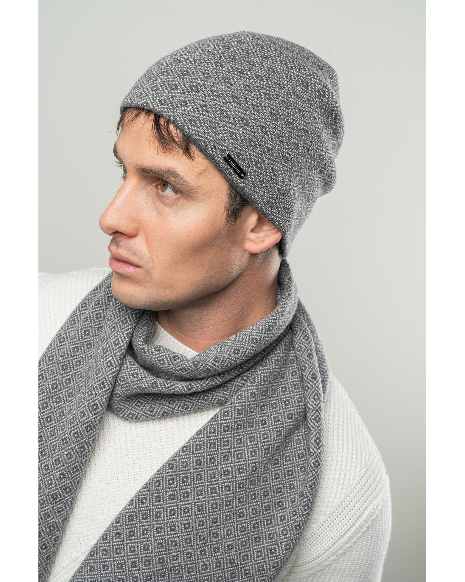 Cappello con lavorazione a rombi, prodotto interamente in cashmere.